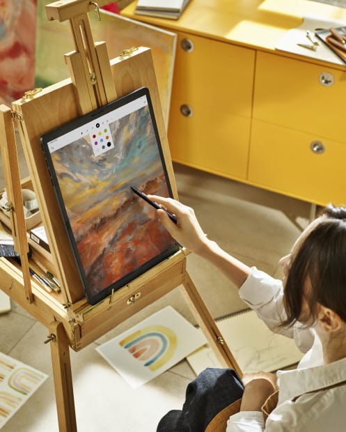 میتوانید از صفحهکلید مجازی یا صفحهکلید بلوتوثی در حالت تا شدن استفاده کنید، و صفحهنمایش وقتی آن را کمی تا کنید تنظیم میکند، که برای خواندن کتابهای الکترونیکی یا اسناد ایدهآل است. از ورودی قلم لمسی پشتیبانی می کند و می تواند به عنوان یک مانیتور منفرد در صورت باز شدن استفاده شود.