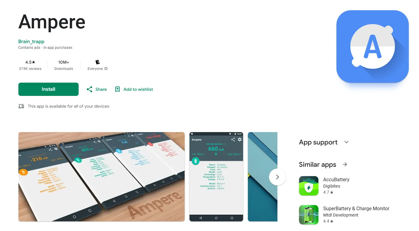 یکی از سادهترین و مقرونبهصرفهترین روشها برای بررسی سرعت شارژ، استفاده از اپلیکیشنهایی مانند Ampere است که به صورت رایگان در فروشگاه Google Play در دسترس است. این اپلیکیشن با استفاده از API سیستمعامل، جریان و ولتاژ ورودی به باتری را اندازهگیری میکند.