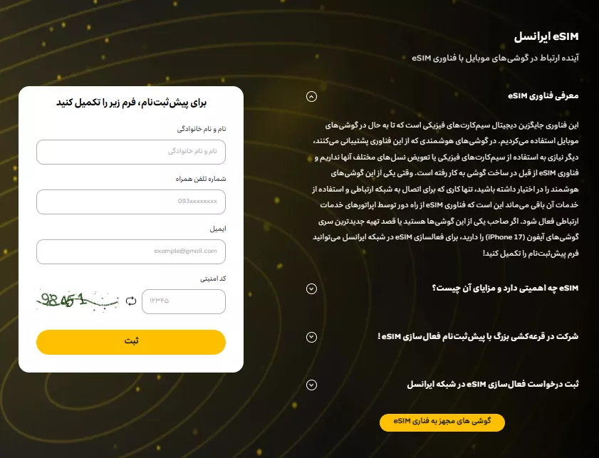 صفحهی پیشثبتنام eSIM ایرانسل